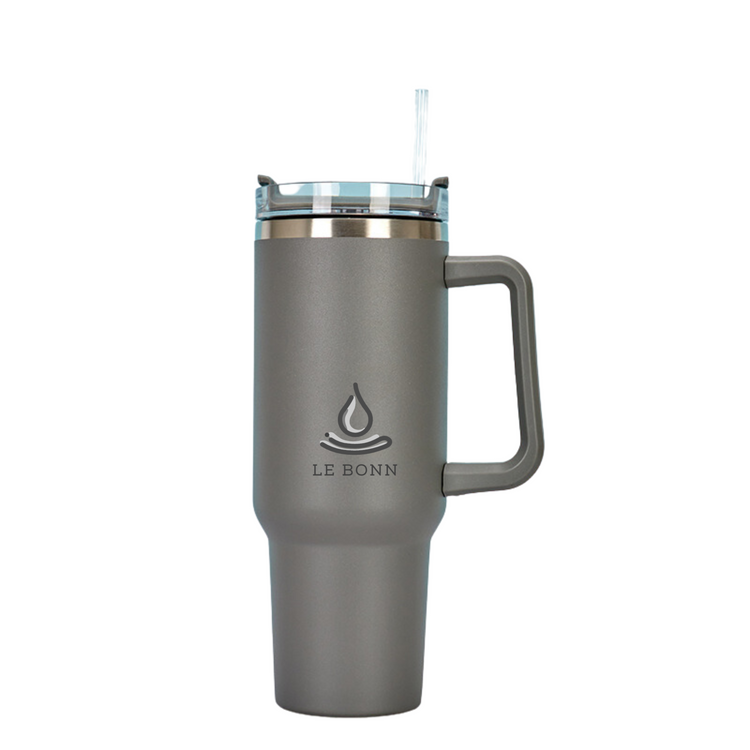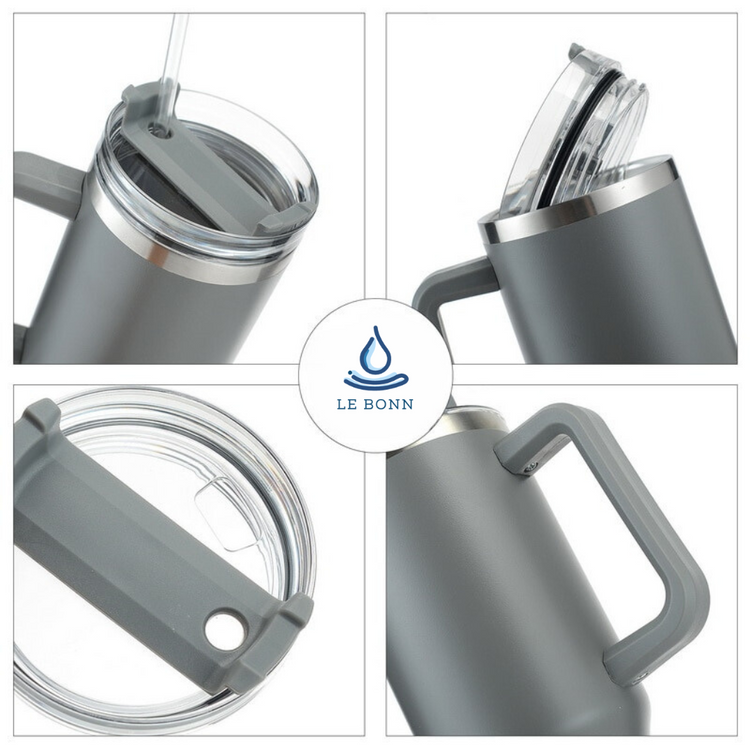 Le Bonn - Grijs - Thermosbeker met Handvat en Rietje to go